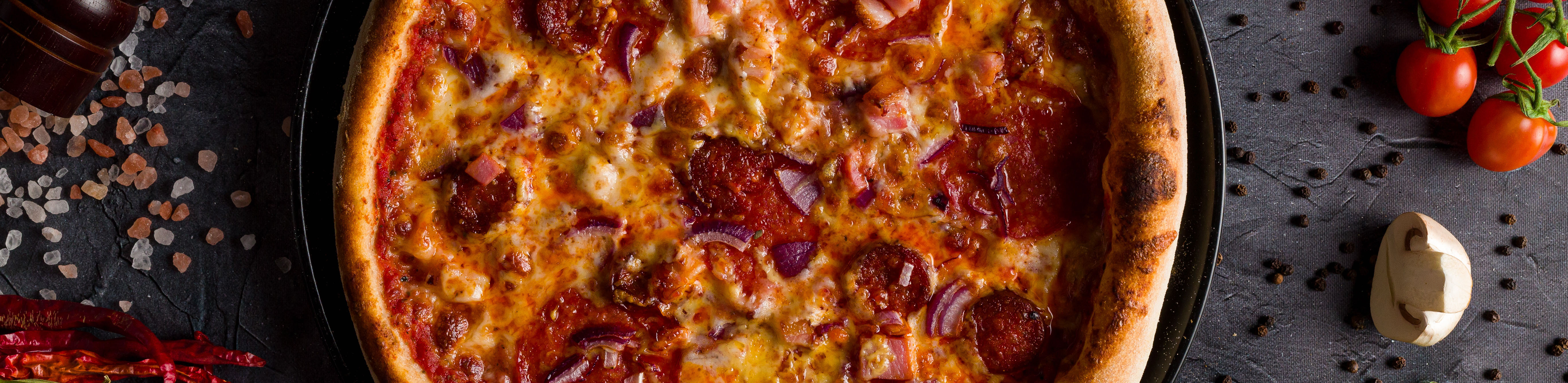 Paradicsom szósz, füstölt mozzarella,csípős szalámi, bacon,kolbász,hagyma